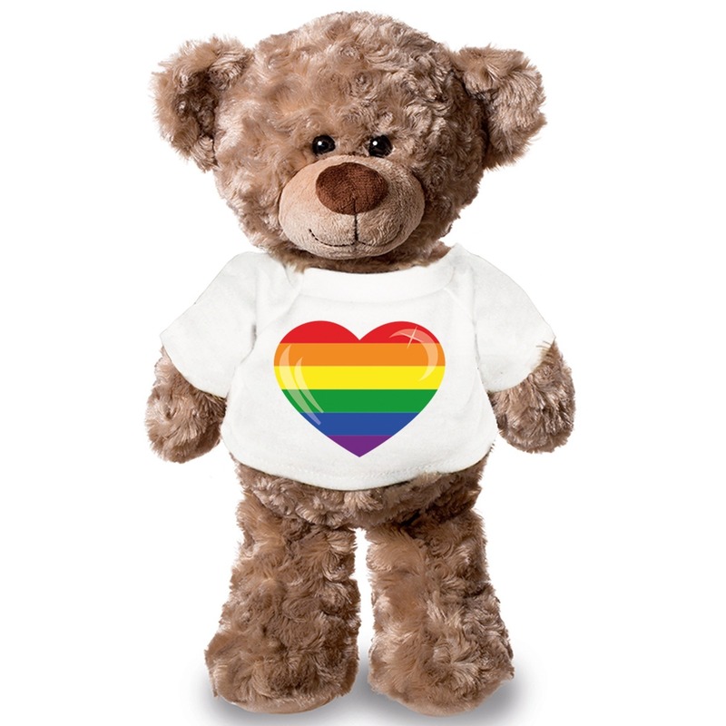 Knuffel teddybeer hartje – gaypride – 43 cm – pluche – met shirt
