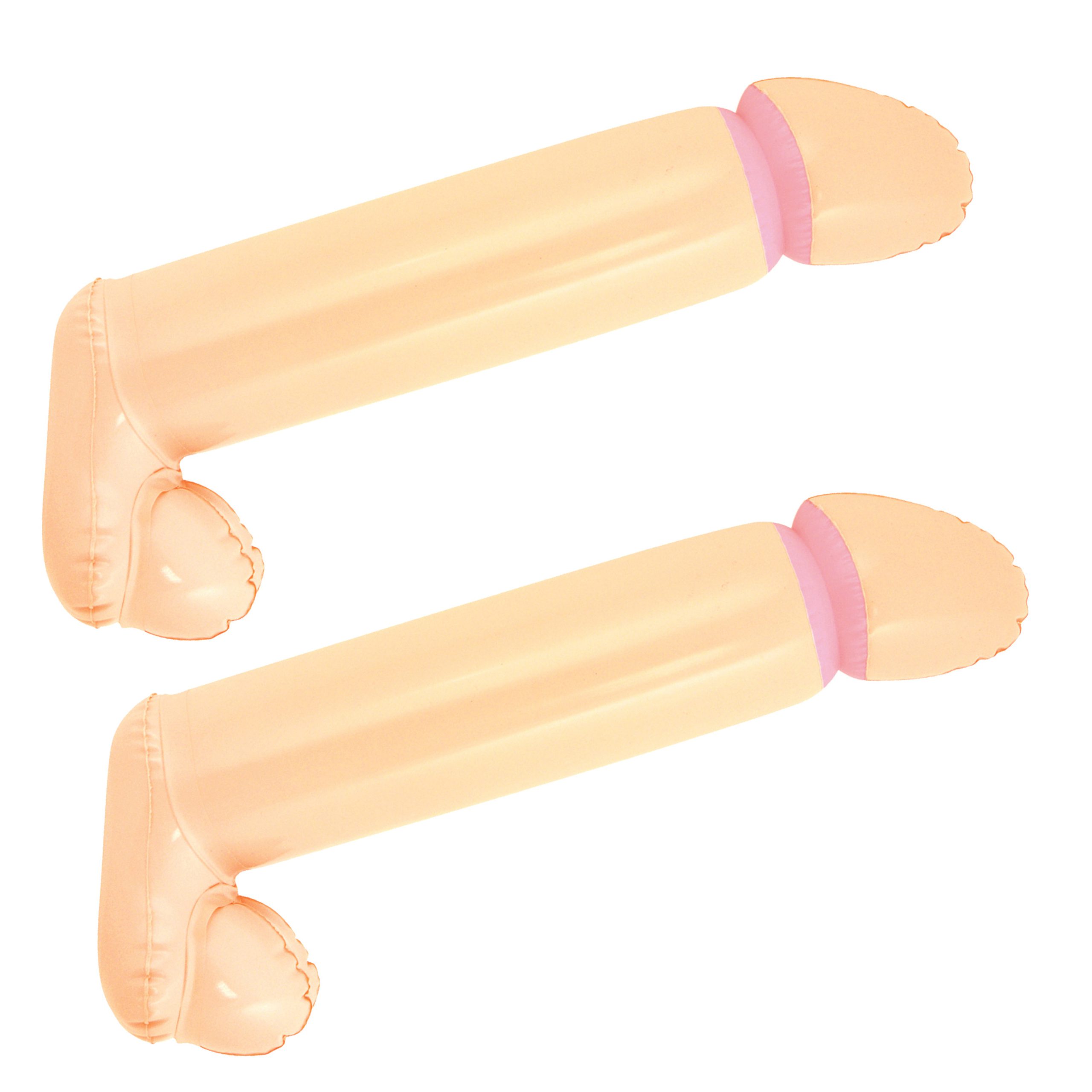 2x stuks opblaasbare piemel/penis. Grappige opblaasbare grote penis om zelf op te blazen. Materiaal: PVC. Lengte: 35 cm. Fun en feestartikelen voor onder andere vrijgezellenfeesten.