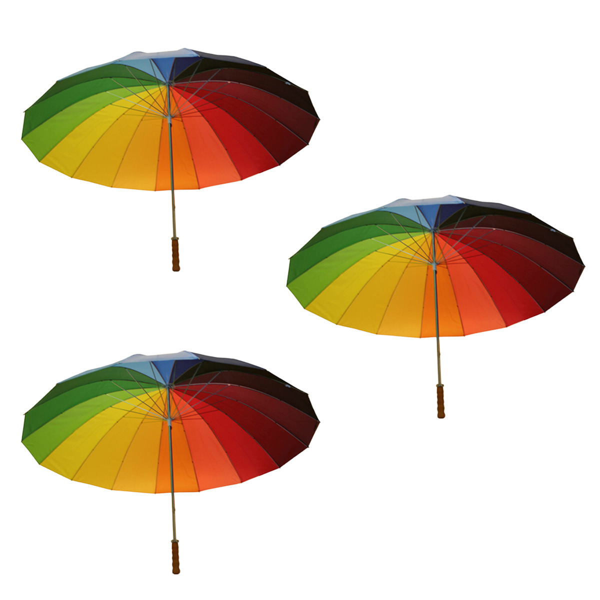 Paraplu golfmodel – 3x – regenboogkleuren – 130 cm – 16 banen – gaypride