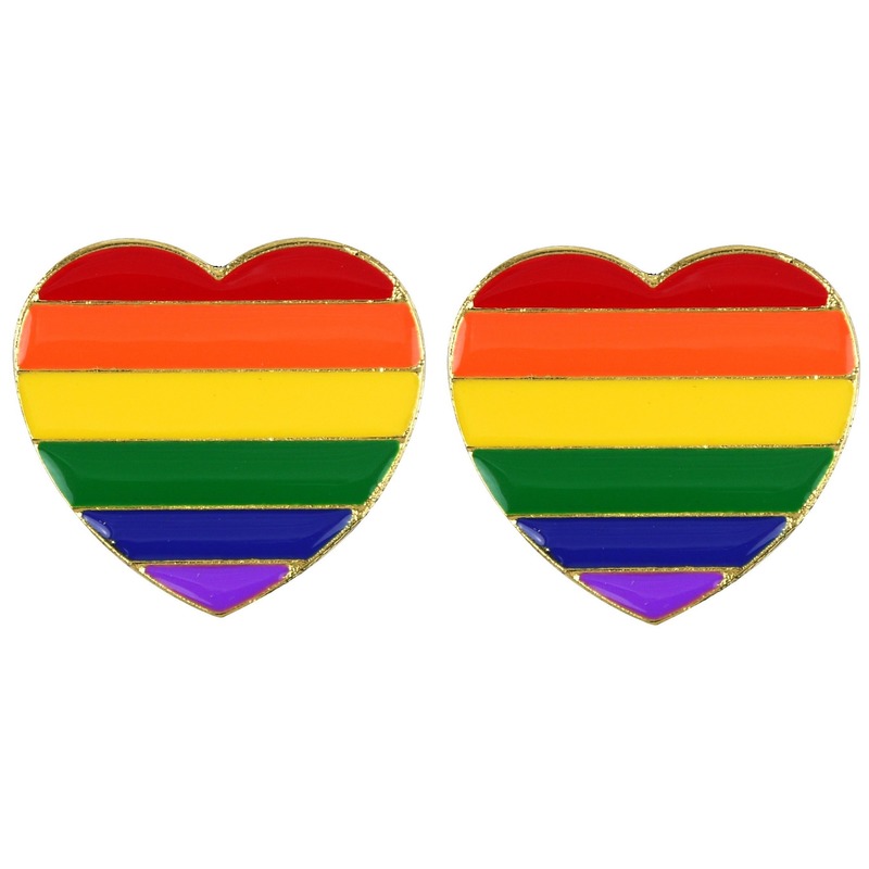 Regenboog pride hartje – 2x – metalen pin/broche – 3 cm – gay pride