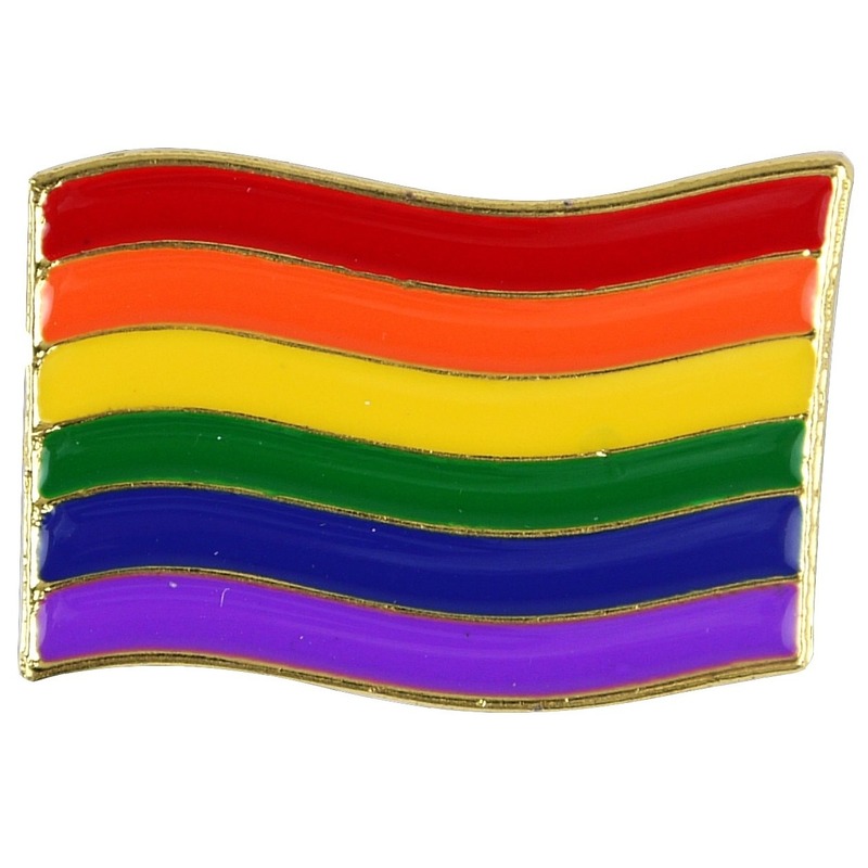 Regenboog pride vlag pin/broche 4 cm. Goudkleurige, metalen broche/pin met regenboog print voor bijvoorbeeld op je tas of revers van je jas, maar ook als give-away! Materiaal: metaal. Gay pride/LHBT thema accessoires. Let op: dit is een verkleedaccessoire voor volwassenen, geen speelgoed.