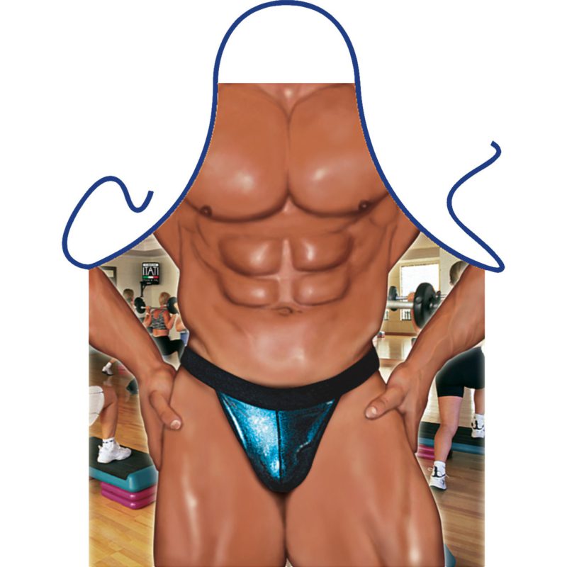 Sexy kookschort Mister Fitness. Keukenschort van een gespierd fitness lichaam gemaakt van mooie kwaliteit bedrukking in schitterende kleuren. Materiaal: 100% polyester. Deze barbecue schorten hebben een lengte van ongeveer 94 cm en 57 cm breed. wasbaar tot 50 graden.
