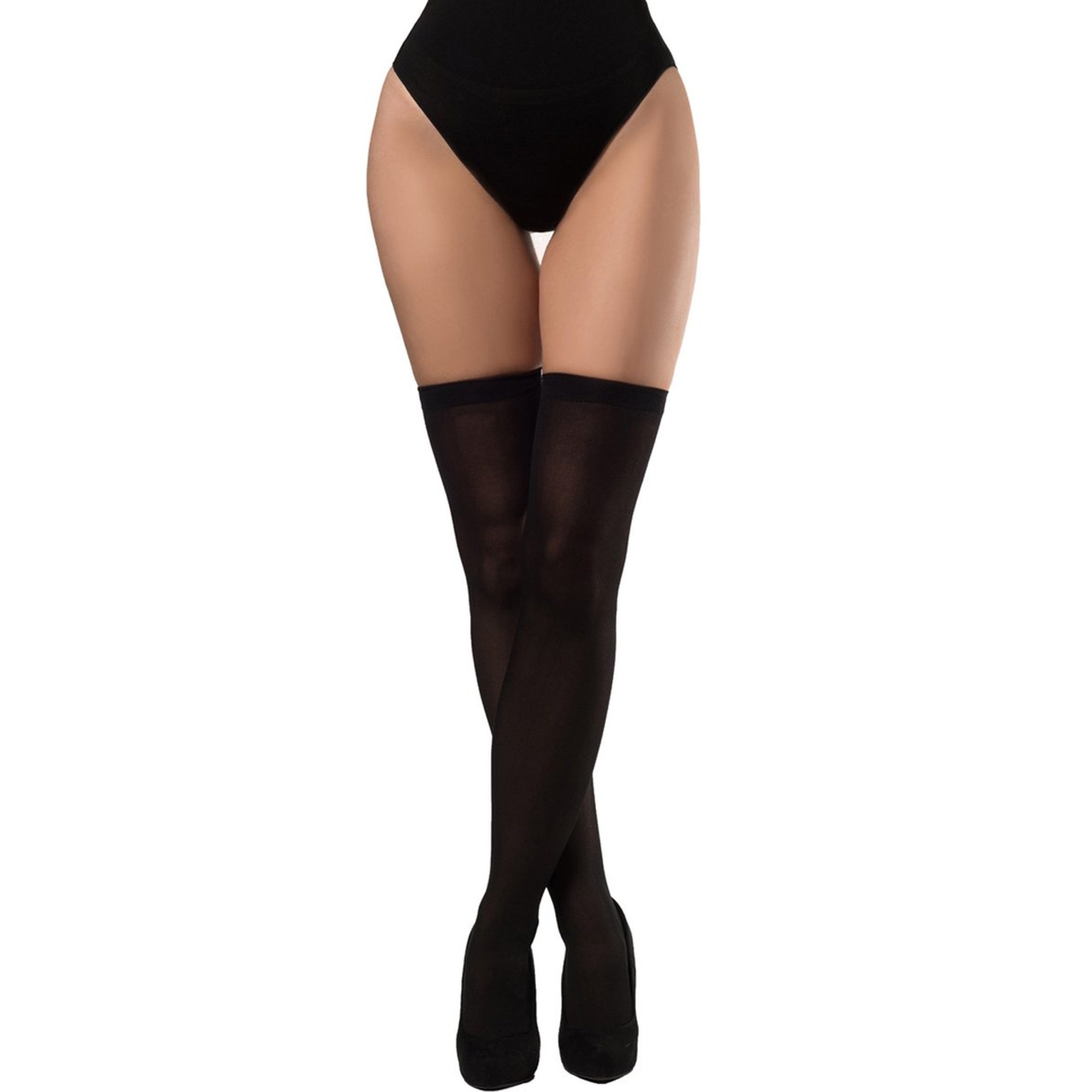 Verkleed kniekousen zwart one size voor dames. De overknee kousen zijn niet alleen heel sexy, ze hebben ook nog eens een hele fijne pasvorm waardoor het tijdens je feestje perfect zit en blijft zitten! Maat: one size. Materiaal: polyester. Let op: dit is een verkleedaccessoire voor volwassenen, geen speelgoed.